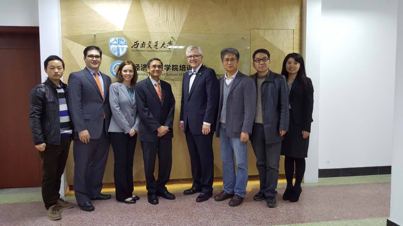 Spears商學院副院長Ramesh教授介紹說Spears商學院建立于1904年,由七個學術部門組成,共有超過100名擁有終身教職的教授。學院設置有6個研究生學位,包括商業分析碩士、信息管理系統碩士、公司關系碩士、會計碩士、經濟學碩士、以及數量經濟學碩士,同時學院還提供包括工商管理和經濟學在內的多個研究方向的博士學位。Ramesh教授希望西南交通大學經濟管理學院的本科生及研究生能申請進入OSU攻讀碩士學位(包括MBA項目)。他特別提到,OSU對于MBA學生沒有工作年限的要求。同時,他還對兩院共同合作培養博士生完成大數據相關課題研究、發表高層次學術論文等方面表現出了極大的興趣。院長Ken教授在會談中也表示,歡迎我院教師有機會能去Spears商學院開展科研方面的學術研究和訪問,并愿意盡可能的提供幫助。