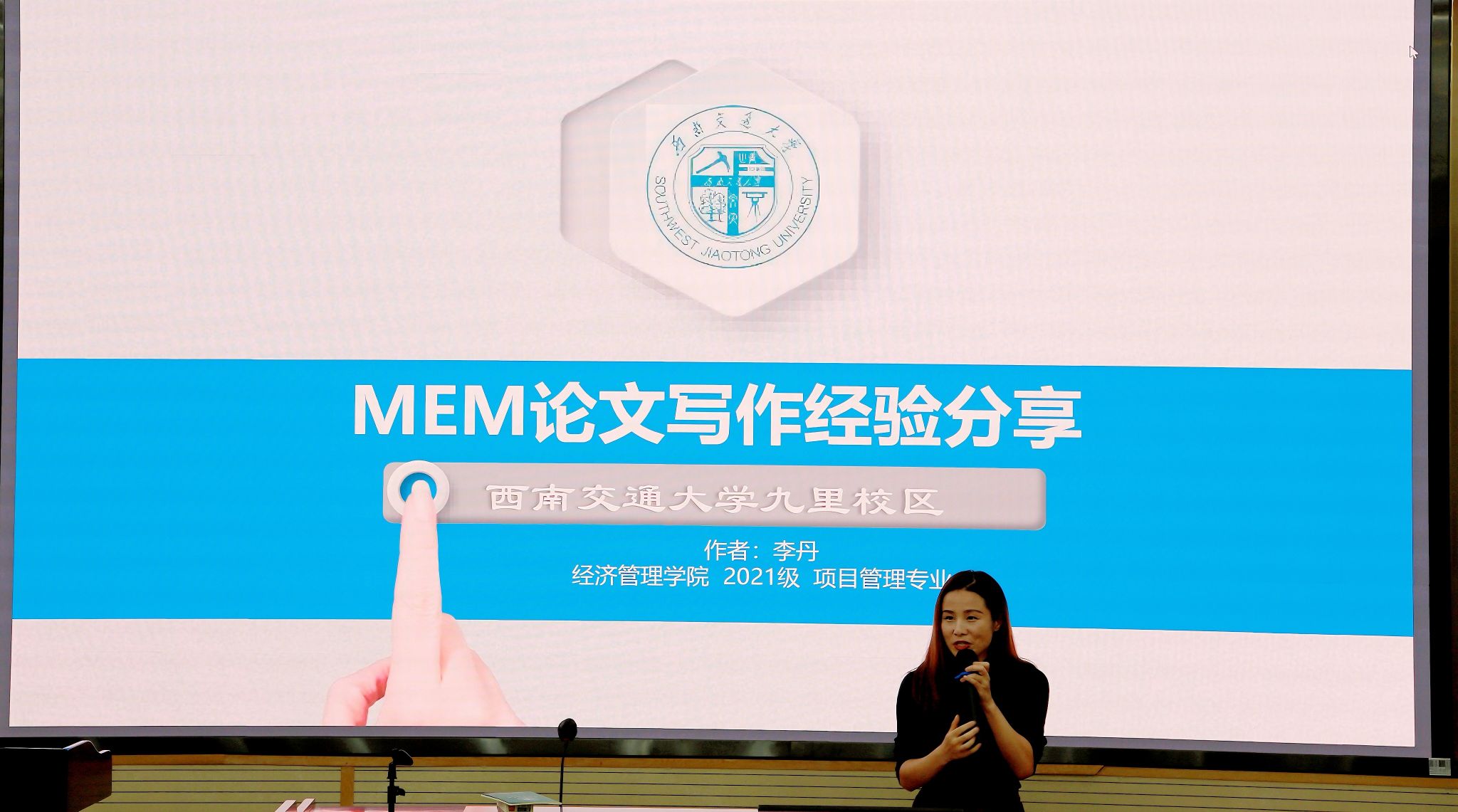 西南交通大學2021級MEM李丹,分享了論文寫作經驗,以及與如何與導師進行溝通等。她談到,在學習過程中要秉持一個好的心態,勇毅自律前行;在答辯過程中,要虛心接受和記錄答辯老師的批評指正、按要求修改調整。