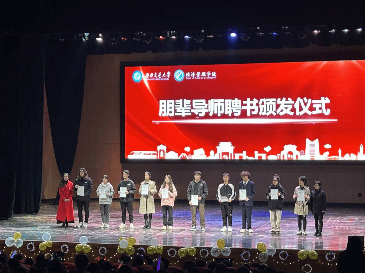 接下來(lái)是2023級(jí)本科生朋輩導(dǎo)師聘書頒發(fā)儀式,袁小容和王哿為朋輩導(dǎo)師頒發(fā)聘書并合影留念。
