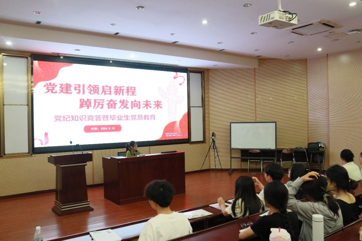 學生黨支部開展黨紀學習教育,提高黨員紀律意識和黨性修養。學院黨委書記郭強于5月9日為學生黨員講授《中國共產黨紀律處分條例》專題黨課,通過深入解析和案例教學,引導黨員準確理解和掌握黨規黨紀。4月至6月期間,各學生黨支部圍繞“學條例,守黨紀,強黨性”黨紀學習教育主題,組織了多樣化的學習活動,如主題黨日、專題教育讀書會、知識競答、警示教育案例學習、畢業生黨員教育等,促進廣大黨員深刻學習領悟《中國共產黨紀律處分條例》,切實做到知紀于心、立紀于身、化紀于行,推動黨紀學習教育入腦入心、走深走實。黨支部之間積極開展聯學共建活動,5月22日,本科第一、第三黨支部與北京大學深圳研究生院研究生宣講團聯合開展“智起未來,聯學共筑青年發展新篇章”主題黨日活動,增強對黨的紀律的理解,并要求支部黨員在日常生活中以更高的道德標準約束自己,時刻牢記“紅線”的存在;6月4日,碩士2023級第二黨支部與華北電力大學經濟管理系研究生第四黨支部開展以“初心如磬擔使命,奮楫篤行譜新章”為主題的黨紀學習教育聯學活動,在交流互鑒的過程中探討如何將黨規黨紀應用于日常工作和生活中,進一步提升黨員的教育效果。