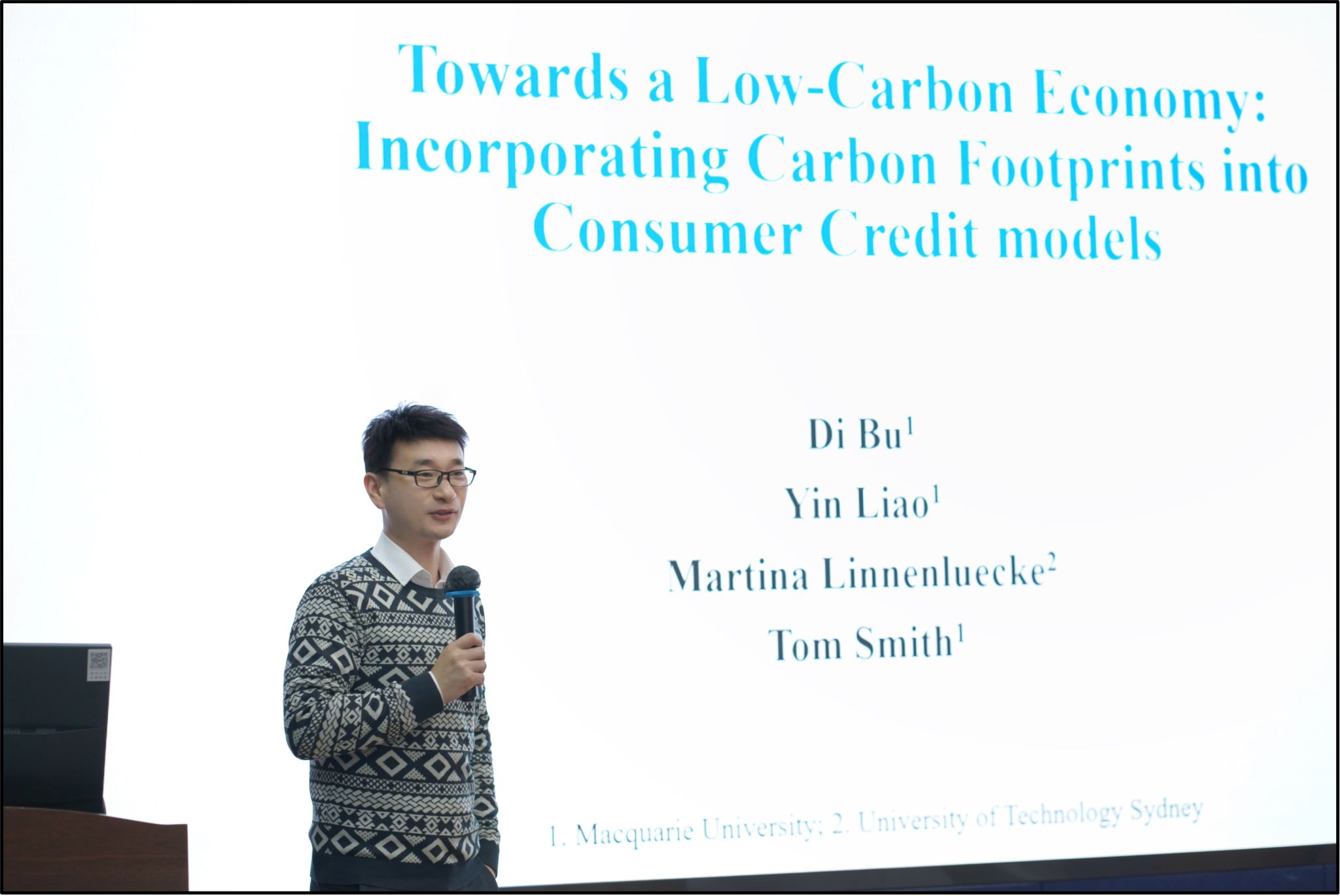 2025年1月10日下午,麥考瑞大學部迪副教授應邀為我院師生作題為“Towards a Low-Carbon Economu:Incorporating Carbon Footprints into Consumer Credit models”的學術講座。本次學術活動由學院副院長馬鋒主持,學院學系教師及研究生30余人參加此次學術活動。
