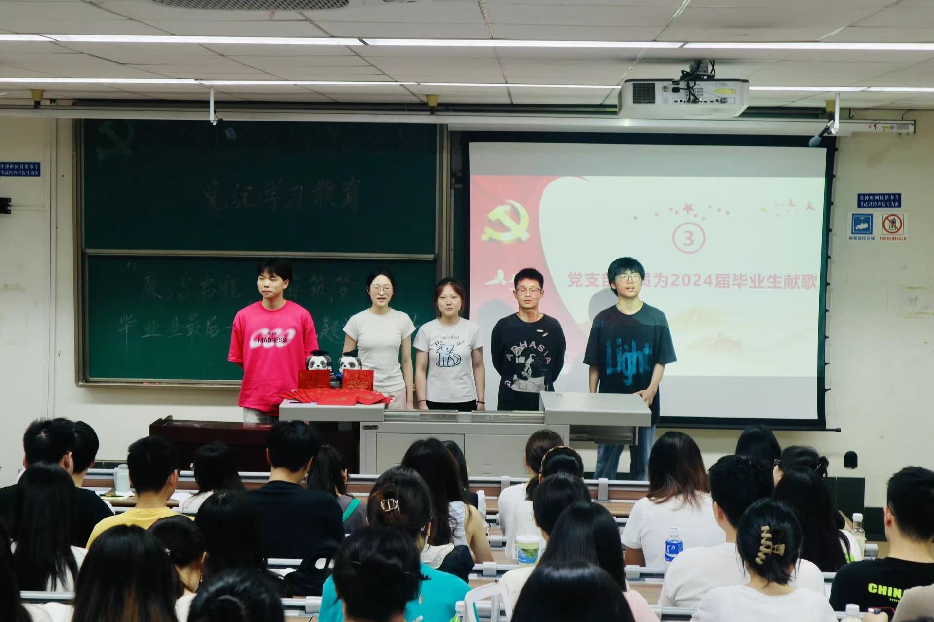 為深入學習貫徹習近平新時代中國特色社會主義思想和黨的二十大精神,開展好黨紀學習教育,進一步增強畢業生黨員的黨性意識和社會責任感,6月20日,經濟管理學院本科第二黨支部于J4310開展黨紀學習教育——“廉潔啟程,青春筑夢”畢業生最后一堂黨課主題黨日活動。