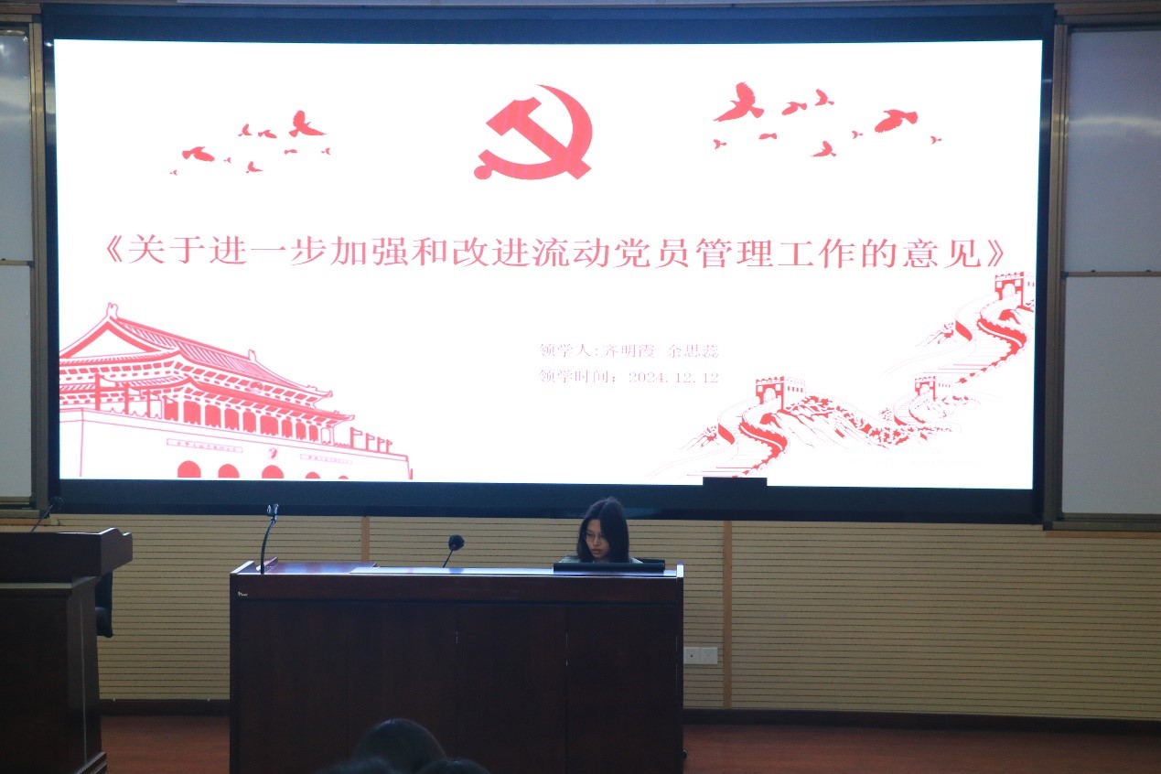 為深入貫徹黨的二十屆三中全會精神,扎實推進習近平新時代中國特色社會主義思想的深入人心,切實提升黨員的理論水平和黨性修養(yǎng),增強黨組織的向心力、服務力、凝聚力,經(jīng)濟管理學院本科第一黨支部于2024年12月12日上午10:00,在0202教室開展“黨建引領啟新程,踔厲奮發(fā)向未來”的黨支部活動。